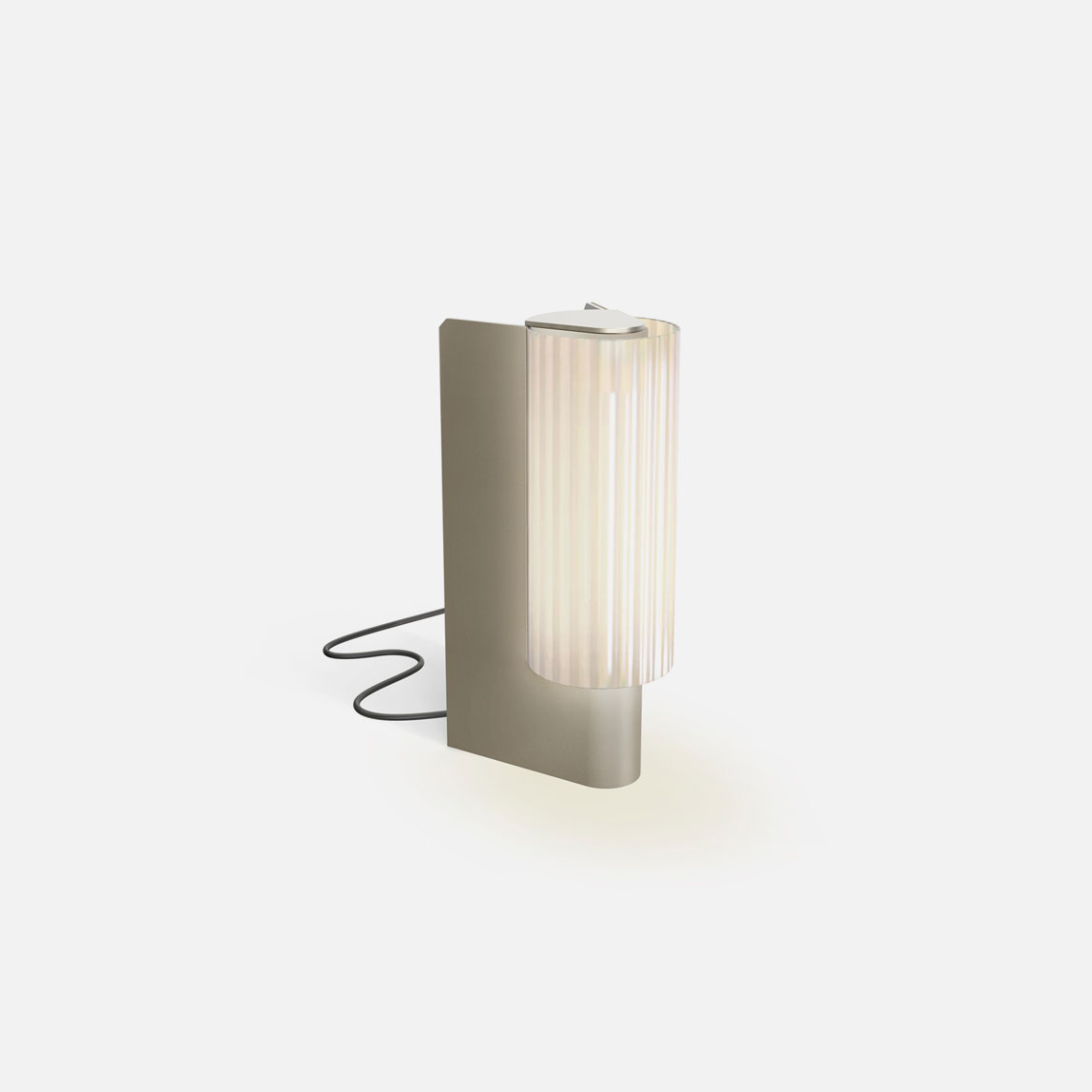 Selinunte, iki temel geometrik formun enerjik birleşiminden oluşur; katlanmış bir metal levha ve içerisine yerleştirilmiş yivli cam silindir. Lambanın alt kısmında renkli beton bir hacim, denge sağlayıcı bir eleman olarak kullanılmıştır.